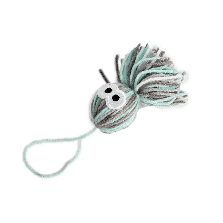 The Yarn Dangling Octopus creature is a great size ball complete with dangling yarns, googly eyes and a jingle bell inside for added interest.